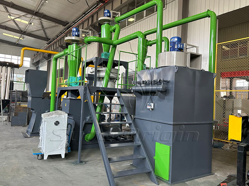 3. 空气分离:粉碎后的电路板随后通过空气分离机,利用气流将金属与非金属成分分离。 金属被收集在一股流中,而非金属成分被收集在另一股流中。